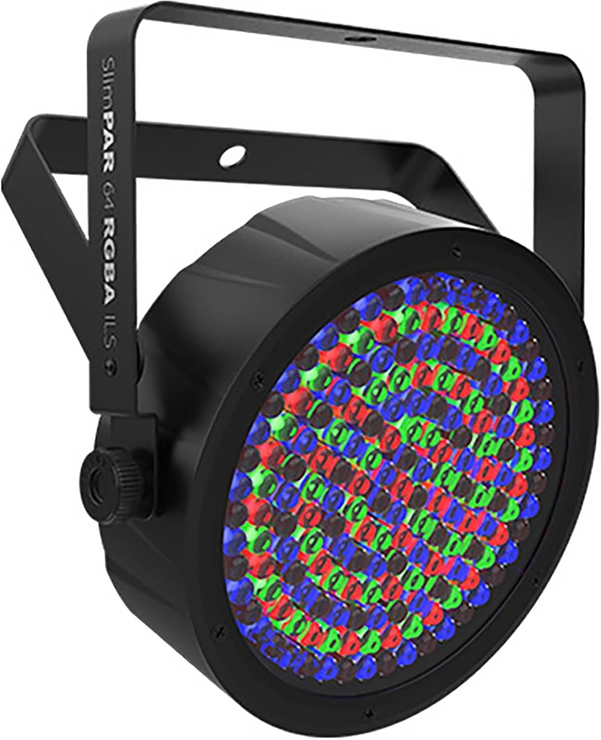 INCLUDES (2) SlimPAR 64 RGBA ILS WASH LIGHTS EACH WITH POWER CORD.