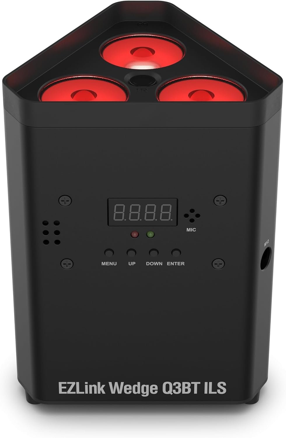 CHAUVET DJ EZLINKWEDGEQ3BTILS EZLink Wedge Q3BT ILS is a 100% TRUE wireless, battery-operated, quad-color (RGBA) LED wash light solution. Its wedge-shaped design makes it the ideal fixture for venue corners, Trusst Goal Post and Arch Kit truss systems. Enjoy a wide range of control options including the IRC-6 remote, ILS, Bluetooth, and DMX. Generate a broad spectrum of colors and achieve natural-looking color temperatures throughout your event thanks to punchy amber LEDs.