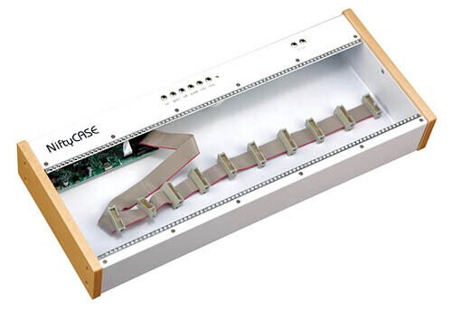 NiftyCASE Euro Rack Case.The Cre8audio NiftyCASE is a moderately sized euro rack case with HUGE possibilities! The NiftyCASE is a great place to start when building a stylish, portable eurorack system. NiftyCASE is more than just a basic eurorack case; it provides all the power and connection possibilities you could possibly ask for. NiftyCASE offers a beefy 2A of cumulative current via its +12v -12v and +5v power rails, ideal for all your modules.Connecting your NiftyCASE to computers or MIDI devices is a breeze thanks to the built-in MIDI to CV conversion. NiftyCASE takes either DIN-MIDI from any DIN-MIDI device or USB-MIDI from your computer and turns it into eurorack compatible CV, gate, mod, and clock signals. NiftyCASE's DIN-MIDI thru lets you easily daisy-chain multiple NiftyCASES and easily integrate NiftyCASE with your MIDI equipment.The NiftyCASE is the perfect size for a portable eurorack case being 84hp wide; that means NiftyCASE isn't super tiny or super huge. We asked Cre8audio how long it took their R&D team to arrive at the perfect size; they told it was just the right size for all of the cardboard boxes they bought to ship it to you in.It's a case with nifty features, it's the NiftyCASE...apparently they took ages thinking that one up.