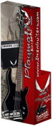 The compact Bassola 10 bass amp features 10 watts of power from a single 8-inch speaker, and it also offers a stereo headphone jack for private practice and controls for treble, mid, bass, and presence. Both the bass guitar and bass amp are backed by a 5-year warranty.