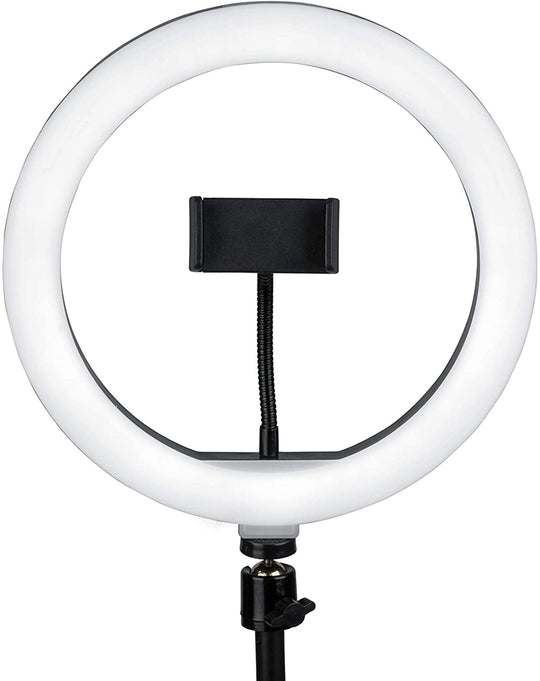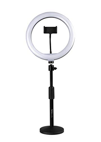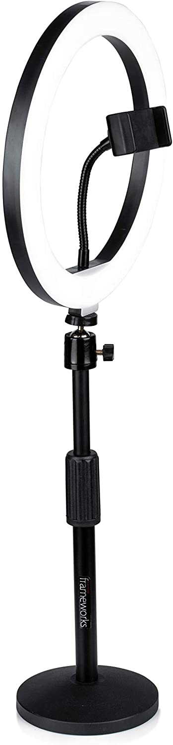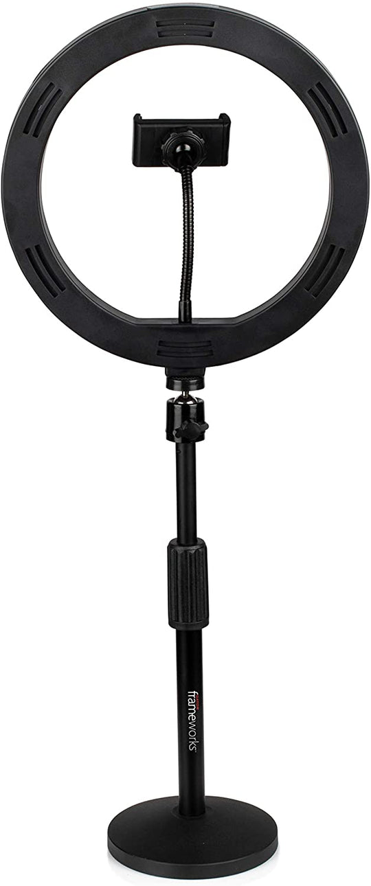 Gator Frameworks 10-Inch LED Desktop Ring Light Stand with Phone Holder and Compact Weighted Base (GFW-RINGLIGHTDSKTP), Black