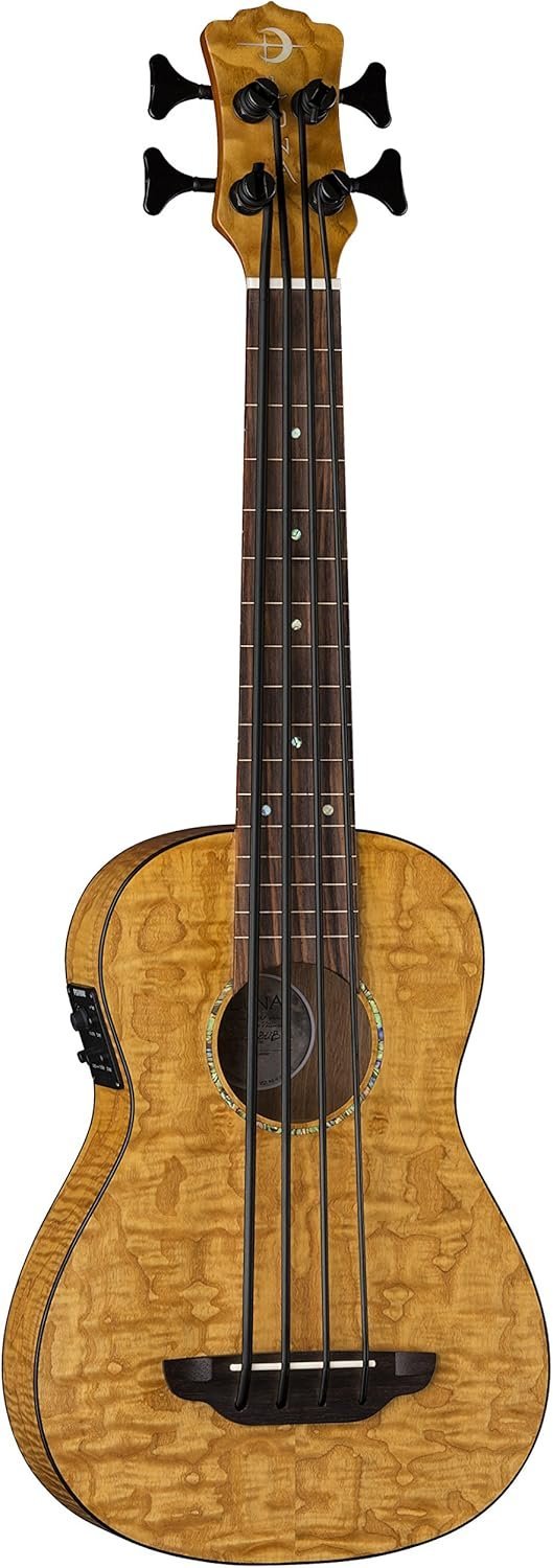 Luna Bari-Bass Ukulele with Preamp-Quilt Top, (UKE BBASS QA)
