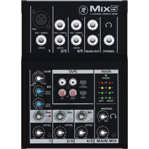 Mackie Mix5 5-Channel Compact Mixer with Padded Nylon Mixer/Equipment Bag.Features:• 1 Mic/Line Inputs with 2-Band EQ • 2 Stereo 1/4" Line Inputs • Stereo RCA Tape Inputs & Outputs • Pan, Level and Overload Indication •...Regular price $84.99 -