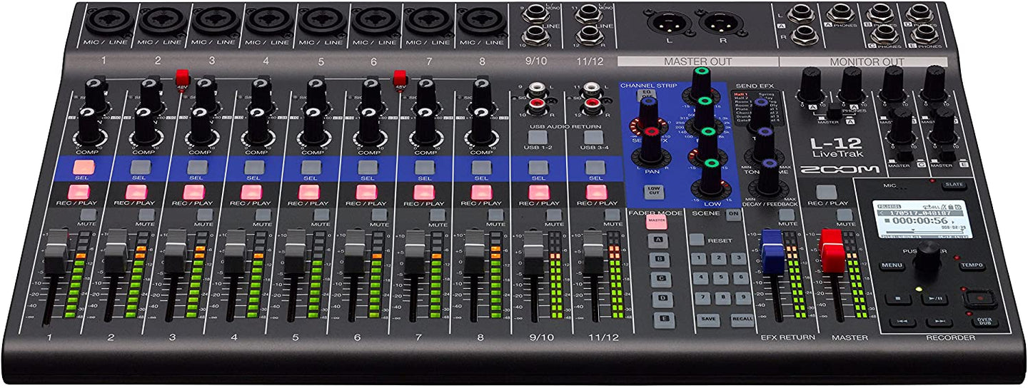 The Zoom LiveTrak L-12 is the only digital mixer that lets you mix live performances and record up to 12 discrete channels, all while providing five individual custom headphone mixes. Plus, it’s got the quietest and most advanced preamps Zoom has ever created.