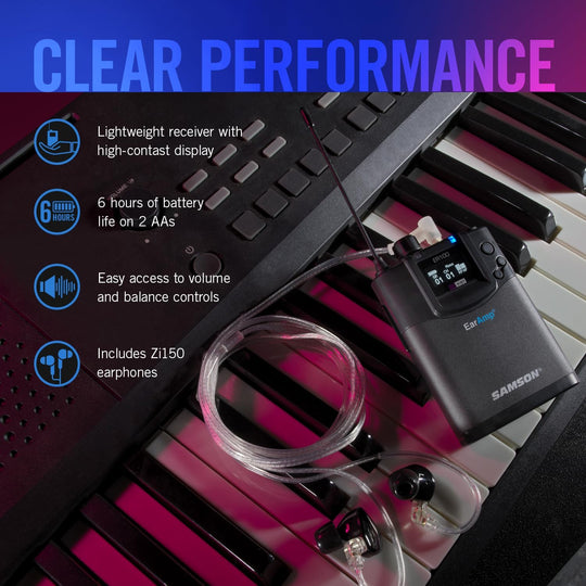 Samson EarAmp® EWM100 Professional Stereo in-Ear Wireless System with Zi150 Earphones for Stage or Studio