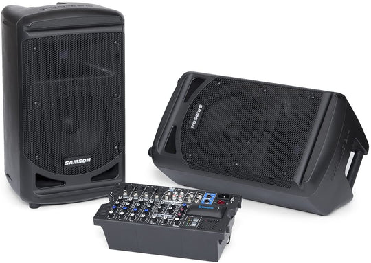 The Samson Expedition XP300 is an all-in-one sound system that offers excellent audio quality with quick and easy setup. Providing 300 watts of power, the XP300 features a lightweight, 6-channel powered mixer and two 6″ speakers....Regular price $599.99 -