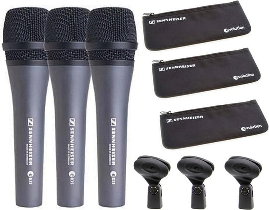 Sennheiser 3-PACK e 835 Pack of (3) e 835 Handheld Vocal Microphones with Carrying Pouches. The Sennheiser e835 dynamic cardioid microphone, part of the evolution series, is designed for speech and vocals. It produces a solid...Regular price $279.00 -