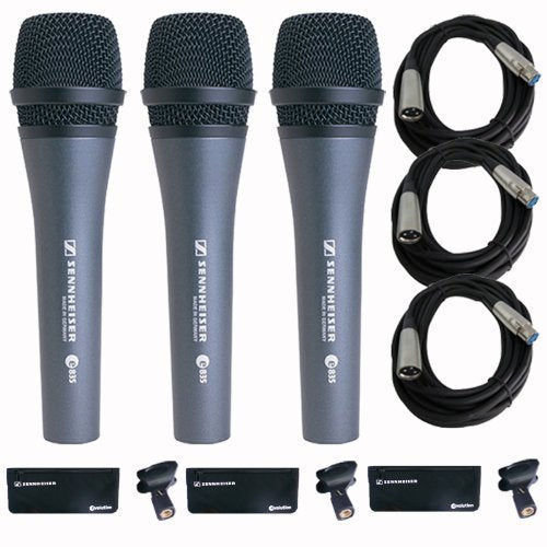 Sennheiser e 835 Dynamic Vocal Microphone (3-Pack) with Cables