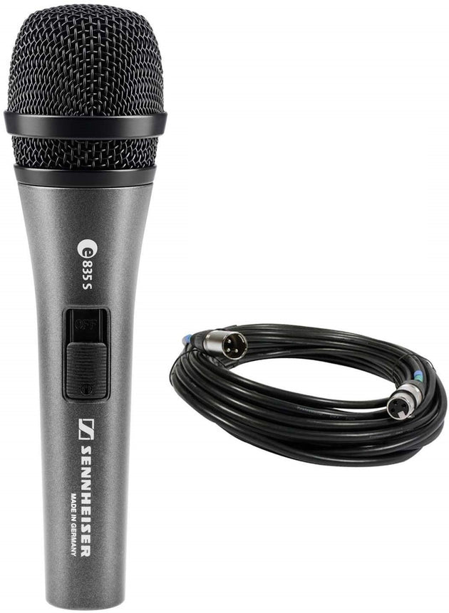 Sennheiser e835-S Handheld Dynamic Cardioid Microphone with On/Off Switch Bundle with Mic Cable