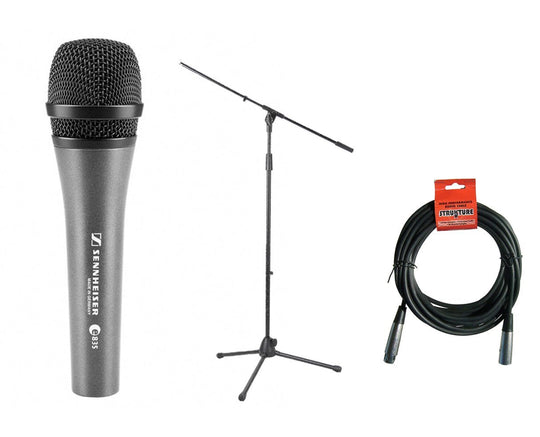 Sennheiser e 965 Handheld Condenser Microphone with Tripod Mic Stand, XLR-XLR Cable & 10-Pack Straps Bundle