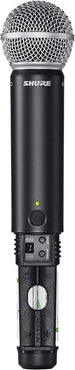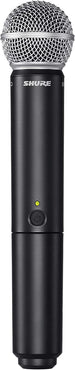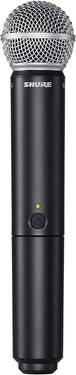 Featuring an integrated SM58 microphone cartridge, the BLX2/SM58 Handheld Wireless Microphone Transmitter delivers wireless audio with professional clarity and reliability. Features of the SM58 Microphone: The legendary Shure SM58 vocal microphone is designed for professional vocal use in live performance, sound reinforcement, and studio recording. Its tailored vocal response for sound is a world standard for singing or speech. A highly effective, built-in spherical filter minimizes wind and breath "pop" noise. A unidirectional (cardioid) pickup pattern isolates the main sound source while minimizing unwanted background noise. Rugged construction, a proven shock-mount system, and a steel mesh grille ensure that even with rough handling, the SM58 will perform consistently, outdoors or indoors.