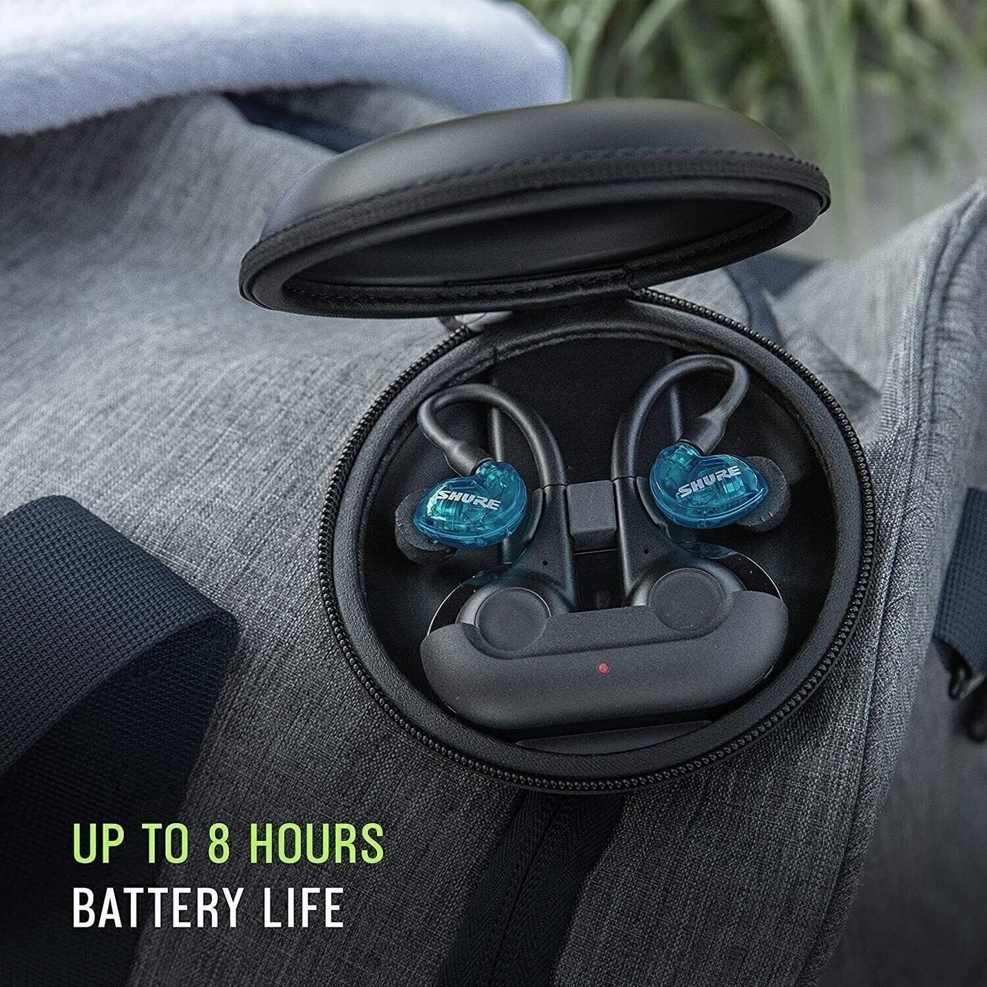Product informationSE215 BLUE W/ BT MMCX TRUE WIRELESS.Features:• AWE-INSPIRING, TRUE WIRELESS AUDIO - Clear sound and deep bass. Engineered from decades of experience supporting music legends. • SWEAT & WATER RESISTANT - Sweat and water resistant with an IPX4 Rating. Designed to pass rigorous quality and durability testing to ensure they’ll maintain peak performance. • SECURE FIT - Secure, close-fit design. Built with the same low-profile design musicians use for monitoring on-stage. Your earphones stay in place with an over-ear hook providing unmatched, long-wearing comfort even during high-energy activities. • SOUND ISOLATING TECHNOLOGY & ENVIRONMENT MODE - Sound Isolating technology blocks up to 37 dB of noise to eliminate distractions. Enjoy the most immersive listening experience no matter where you are. Environment Mode lets you hear the outside world with the push of a button. • 32 HOURS BATTERY LIFE - Up to 32 hours total battery life. Uninterrupted audio wherever you are – on the train, in the gym, or at home. The earphones hold up to 8 hours of battery at a time and the included carrying case provides three additional charges. • BUTTON CONTROL & CLEAR CALL - Onboard button controls for quick access to volume, playback and calls. Enjoy clear, stereo calls with exceptional audio through beamforming microphones for video conferencing and phone calls. • DETACHABLE CONNECTION - Detachable connection allows the AONIC 215 Earphones to attach to different cable accessories with an MMCX connection. Stay connected to any device, including airplane entertainment systems. • BLUETOOTH 5 TECHNOLOGY - Bluetooth 5 wireless technology for enhanced stability and a range of up to 30 feet (10 meters). Pairs to phones, tablets and laptops for music and calls.• SHUREPLUS PLAY APP - ShurePlus PLAY app allows you to customize your hardware EQ, button controls, Environment Mode and prompts. Free to download for iOS and Android.• WHAT’S IN THE BOX - Includes a two-year warranty, AONIC 215 Detachable Sound Isolating Earphones, True Wireless Secure Fit Gen 2 Adapter set, fit kit with a variety of sleeves for the perfect fit, premium charging case (not IP-rated), and USB-C charging cable.COPYRIGHT 2023 AudiotopiaShipping informationAll orders within the Continental US will be shipped within 24-48 hours on regular business days unless extended handling time has been added. Please note orders shipping to PR, HI and AK typically require additional processing time depending on where they are being shipped from and may incur additional shipping charges. Orders placed after 12 pm on Fridays will be processed the following Monday morning. All orders will be packaged securely and shipped using either FedEx, UPS, USPS, ENSENDIA, LASERSHIP, ONTRAC, BLUE_PACKAGE or PRESTIGE but always fully insured. We will combine shipping for multiple items when possible. Shipping transit times vary and usually take 1-7 business days based on the final destination and the service selected. Standard delivery is set as the default shipping method. Buyer is responsible for selecting expedited shipping for listings that offer free 2 day shipping. For International orders: Most orders ship via eBay's Global Shipping Program unless other arrangements have been made prior to purchase. Transit times can vary for a variety of countries. We can't control customs delays in your country thus shipments may take longer than we expect. BUYER IS RESPONSIBLE FOR ALL CUSTOMS CHARGES, VAT AND OTHER TAXES IN YOUR COUNTRY, as well as any additional carrier fees. We don't know what these charges are in different countries; if levied they are collected by the carrier upon delivery.Payment optionsWe accept payments via PayPal. Please note, if you have a non-U.S. issued credit card you may use that through the PayPal system.Return policyWe offer a money-back guarantee (excluding any shipping charges) on items returned within 30 days of purchase. We also welcome exchanging. Customer is responsible for return postage. Simply contact us with the reason for the return. Do not send anything back without an RA# (Return Authorization) since it will not be processed. All returns require authorization--items do not necessarily go back to the location from which they shipped. All returned items must be in original condition, and must include the original factory box (intact UPC bar codes and serial numbers ) and factory packaging (e.g. foam, plastic, wrappings, etc.), peripherals (e.g. battery, charger, cords, straps, etc.), included warranty cards (without markings), and all instruction booklets and paperwork. Once you receive the appropriate RA# documents and the appropriate return address you must ship back to us within 10 days so we can correctly process the return. We can either send a replacement/exchange or issue a full refund (minus shipping). If your item is damaged, please contact us with details about the damage and we need you to email photos of the issue to us, we will then forward this information to the warehouse to process and handle shipping you a replacement at our cost within the U.S. only. Items which are defective we can handle taking care of getting you a working item (upon availability) within 30 days of purchase. Please provide serial number when contacting us. After 30 days please contact the respective manufacturer, all our items are backed by the full warranty from the manufacturer.