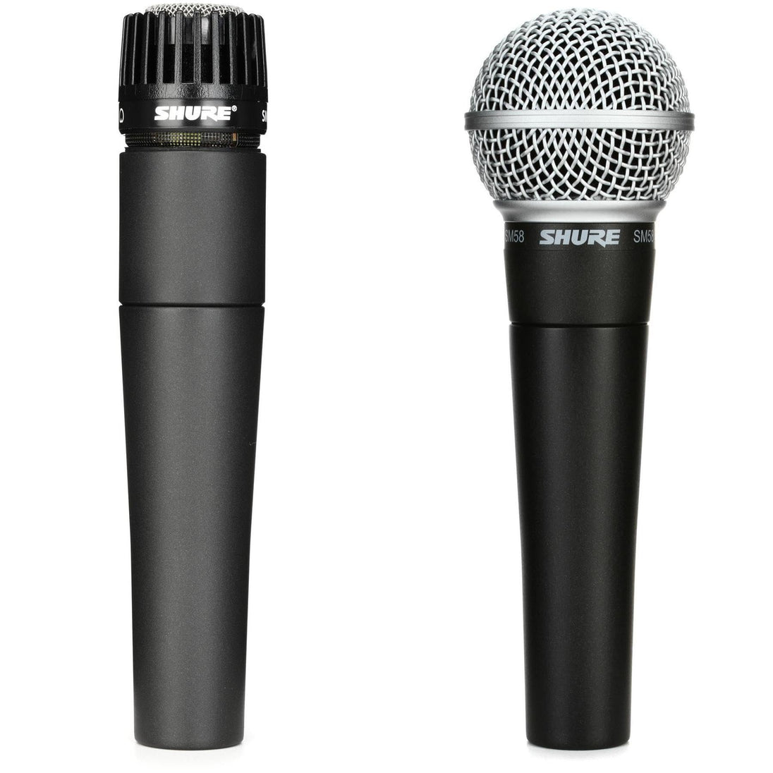 Shure SM57 & SM58 Microphone Set - Professional Dynamic Cardioid Pair for Instruments & Vocals - Crisp Sound & Versatile Performance. Includes mic clip and bag for each.