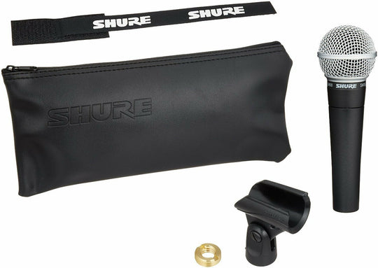 Product informationShure SM58-LC Cardioid Dynamic Vocal Microphone Bundle with Boom Stand and XLR Cable- Includes Stand Adapter and Zippered Pouch- Designed for professional vocal use in live performance, sound reinforcement, and studio recording- Frequency response (50...Regular price $169.00