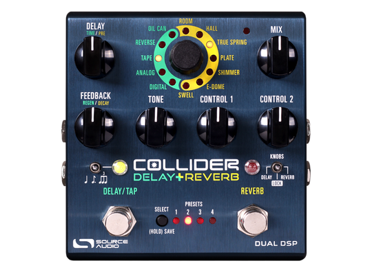 Design complex soundscapes in seconds with the Collider Delay+Reverb. Source Audio hand-picked 12 standout delay and reverb effects from their award winning Nemesis Delay and Ventris Dual Reverb, and put them together in one compact housing...Sale price $379.00Regular price $489.00