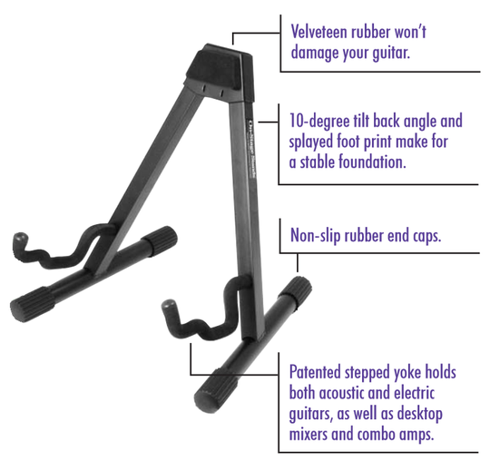 A-Framed Guitar Stand Features OnStage's patented double-stepped yoke. Also ideal for your desktop mixer Black FinishRegular price $45.95 -