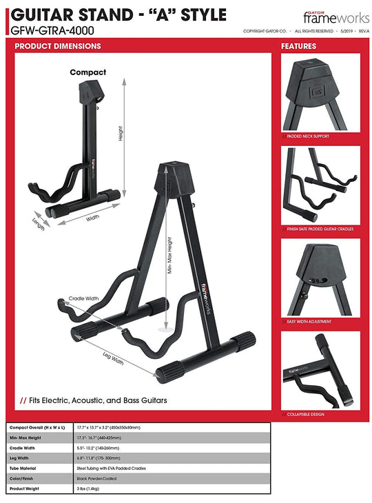 Gator Frameworks GFW-GTRA-4000 A-style guitar stand w/ cradle fit any guitar