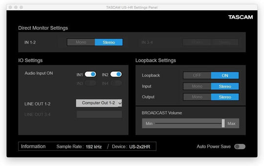 Tascam US-2x2HR 2 Mic 2IN/2OUT High Resolution Versatile USB Audio Interface
