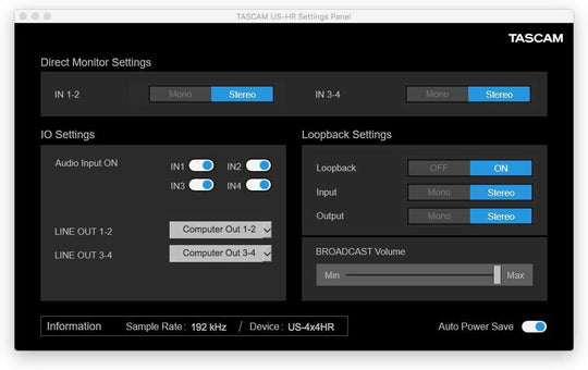 Tascam US-4x4HR 4 Mic 4IN/4OUT High Resolution Versatile USB Audio Interface