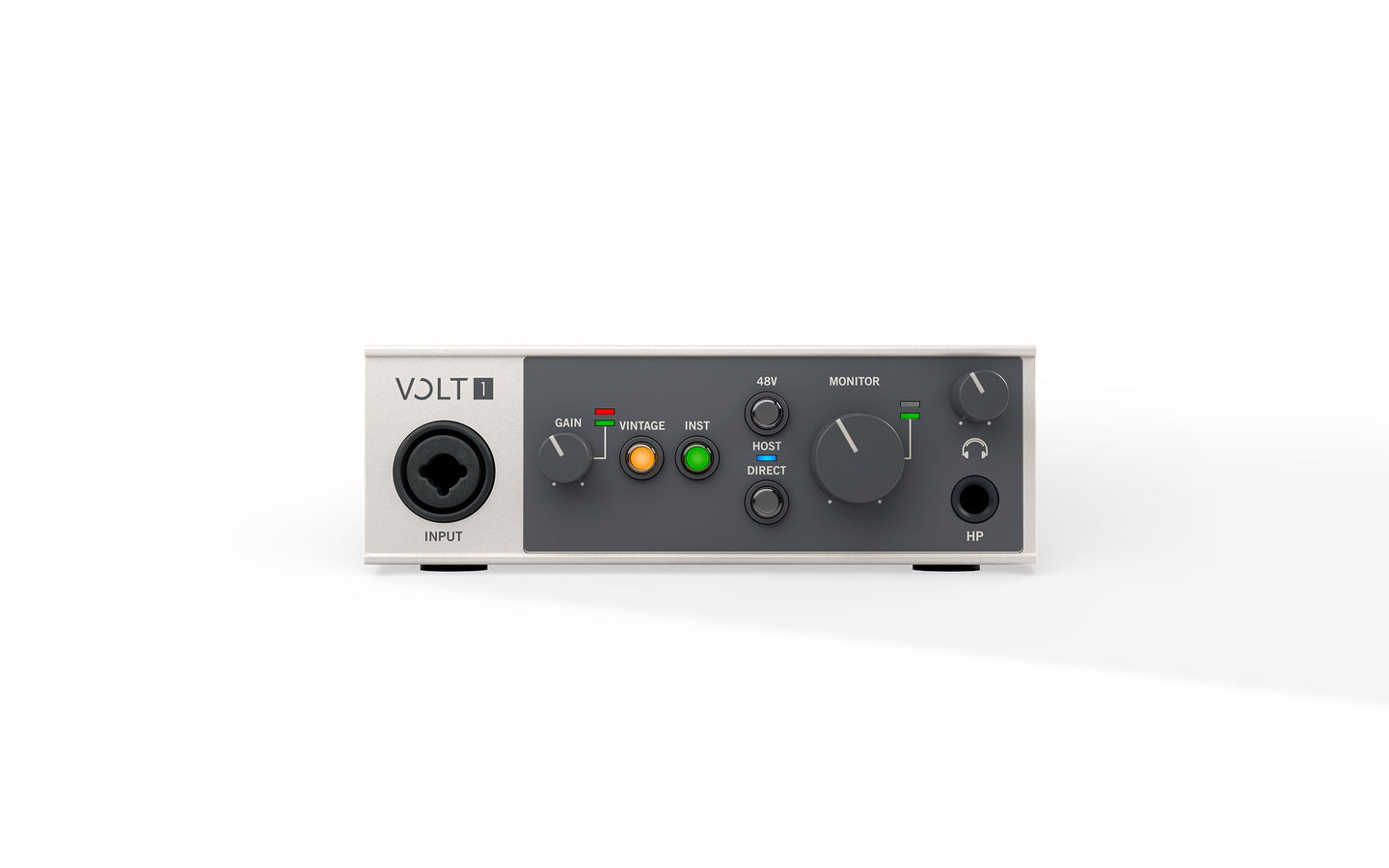 Universal Audio created Volt 1 for singers, songwriters, guitarists, livestreamers, and podcasters. This portable 1-in/2-out USB recording interface for Mac, PC, iPad, and iPhone gives you superior sound quality, a Vintage Mic Preamp mode derived from UA’s 610 tube preamp, plus a suite of industry-leading music software — so your next recording will sound classic. From the team that brought you the game-changing Apollo interface, Volt 1 delivers superior studio sound quality, with more character and tone than any USB interface in its class. Few sounds can compare to a vintage Universal Audio 610 tube preamp, as used to record everyone from Ray Charles to Van Halen. Volt 1 gives you the rich, full sound of this classic UA mic/line/instrument preamp, thanks to its built-in tube emulation circuitry, a UA exclusive. Some audio interfaces give you a smattering of random audio apps. Not Volt. Instead, UA put together a bundle of serious music production tools, virtual instruments, and plug-ins including Ableton, Melodyne, UJAM’s Virtual Drummer, Marshall, Ampeg, and more. Volt 1 gives you simple 1-in/2-out audio connections. Just plug a mic or instrument into the front panel. Then connect your speakers or headphones to monitor your audio with no latency. With Volt, you'll be creating like a pro, fast. Traveling light? Plug Volt 1 into your iPad or iPhone, and you can easily create beats and samples, record your band’s rehearsals, and edit songs anywhere. Volt 1 users get an extended 30-day free trial to UAD Spark, an ever-expanding library of world-class plug-ins and instruments for a low monthly price. UAD Spark plug-ins run natively on Mac and will give your recordings the pro analog tones heard on your favorite albums. Featuring rugged all-metal construction and sleek, vintage-inspired industrial design, Volt 1 elevates your production space with impeccable style, built to last decades.