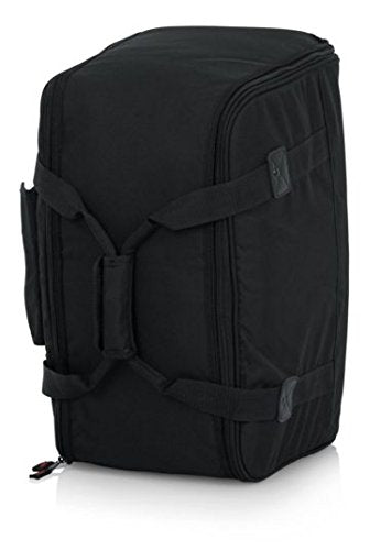 For portability, the pro version of the PA system features built-in rolling wheels and an extendable handle.
