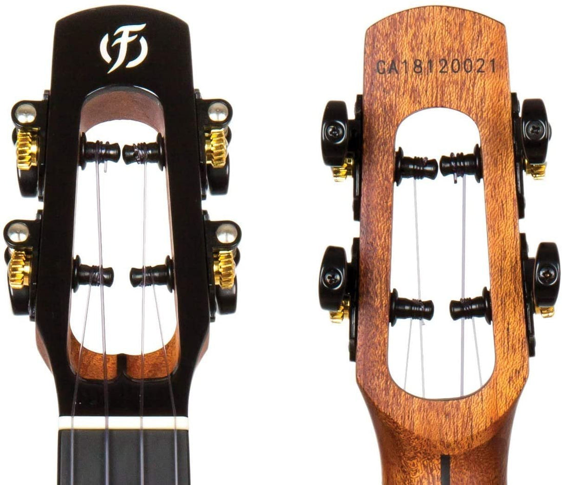 Tech Ebony is a composite wood used by many high end luthiers. Flight is a great believer in using the right material for the job and has no hesitation in using composites where it will bring the highest quality to the instrument as well as contribute to global sustainability. The high-end Tech Ebony is a stunning alternative to rosewood which the flagship Royal Series is well deserving and means you can travel the world without the stress of CITES certification.