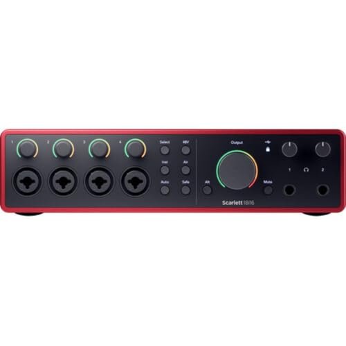 The producer's interface: Scarlett 18i16 features 18 inputs and 16 outputs, including four mic preamps, Hi-Z, line inputs, ADAT, S/PDIF, and MIDI I/O. Capture everything: The 4th Generation preamps provide 69dB of gain, with two Hi-Z inputs and eight line inputs for versatile connectivity. Audio quality beyond its class: Equipped with 24-bit, 192kHz converters from our flapship RedNet range, offering a 122dB dynamic range for detailed recordings. Big-studio sound: Air modes add presence and harmonic drive to your sound, replicating the character of classic studio consoles for vocals and instruments. Professional workflow tools: Auto Gain sets optimal levels quickly, while Clip Safe prevents clipping by monitoring and adjusting gain in real-time.