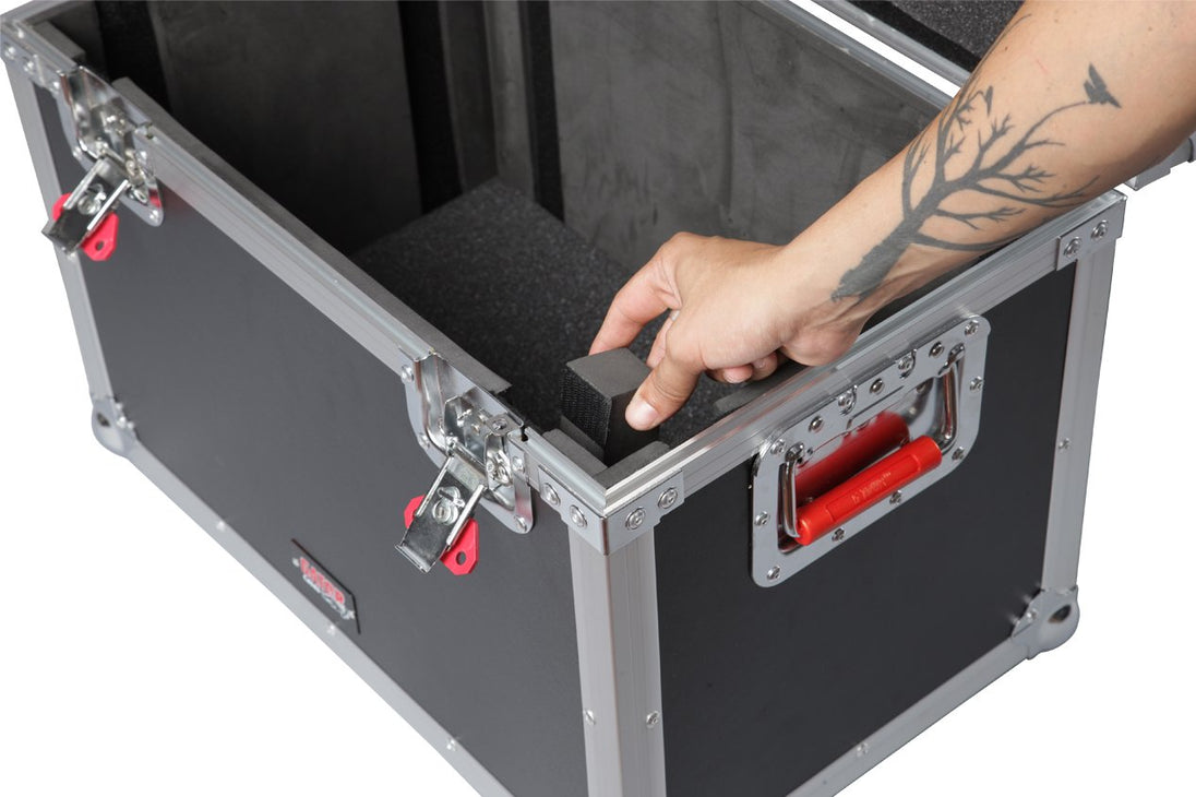 The G-TOURMINIHEAD3 ATA Wood Flight Case from Gator Cases features internal dimensions of 22″x12″x12″ resulting in the perfect fit for the Blackstar HT-5RH® or other similar, large-sized lunchbox style amplifier heads. Constructed with heavy-duty plywood, this beautifully stylish laminated case is exceedingly durable and reliable. Thoughtfully-designed additional features include rubber stabilizing feet, spring-loaded rubber gripped handles, protective ball corners, lockable twist latches and Gator red signature hardware. An adjustable interior allows you to create a perfectly proportioned nest inside EVA ultra-durable foam Interior protection. Simply add or remove foam blocks to achieve the right combination of sizing options. Choose Gator Cases to provide premium protection for your large lunchbox with the G-TOURMINIHEAD3 ATA Wood Flight Case.
