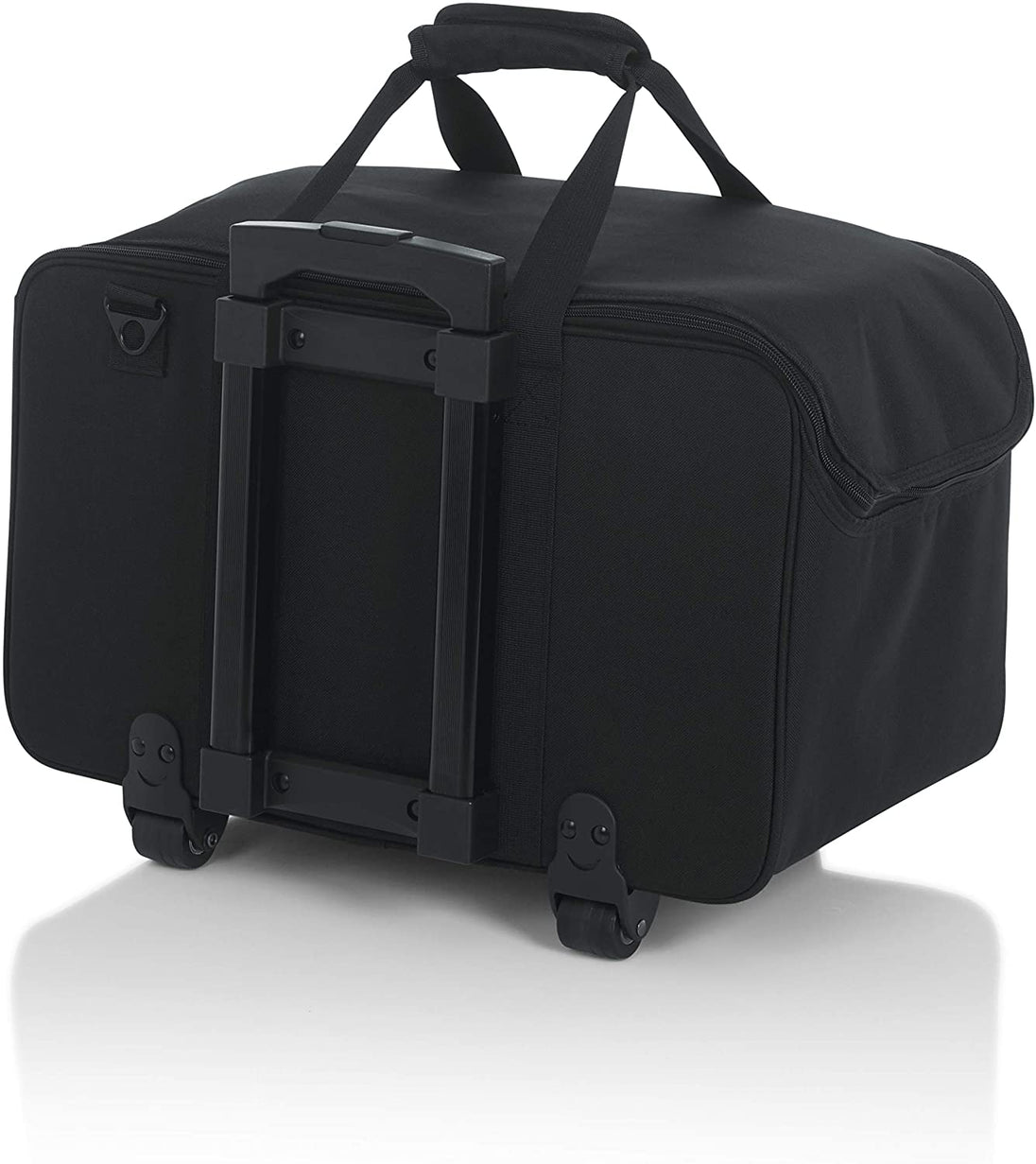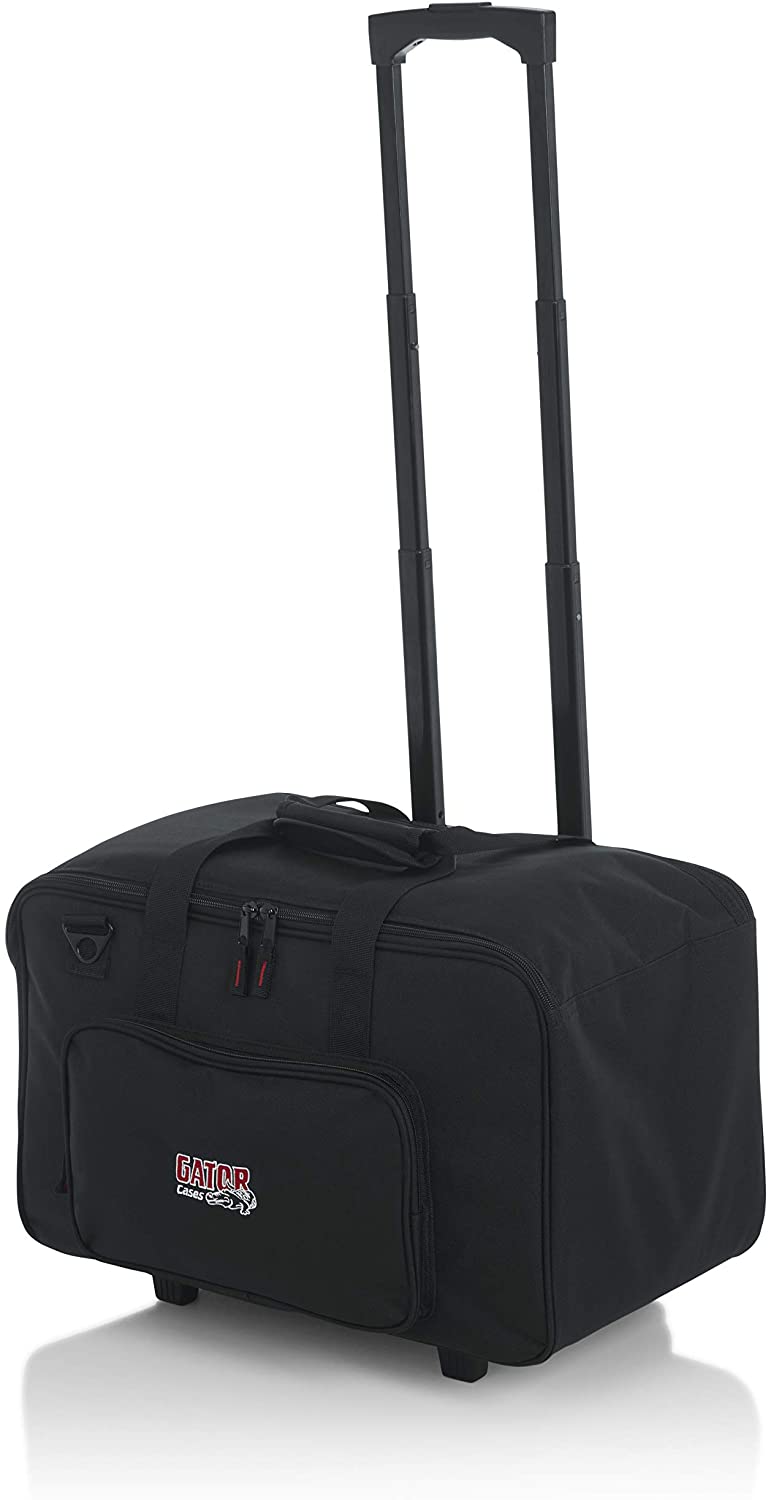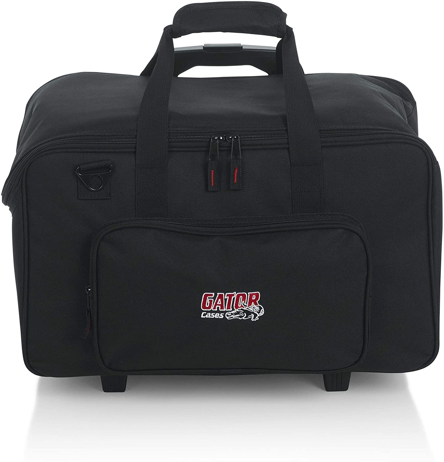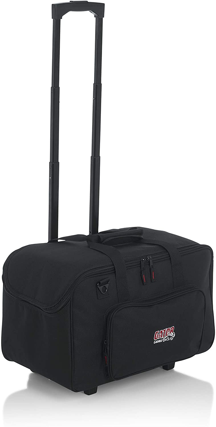 - Dual zipper design opens top of bag for easy loading and unloading.Large, exterior storage pockets for cables and accessories.