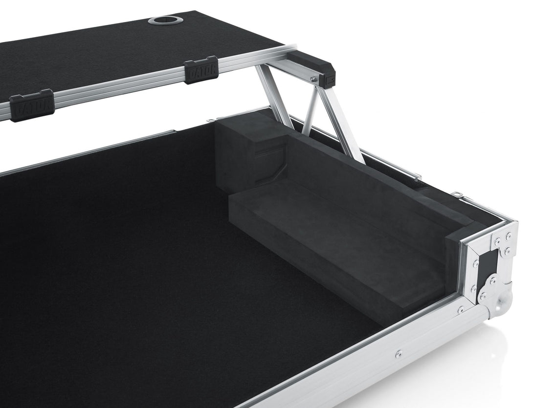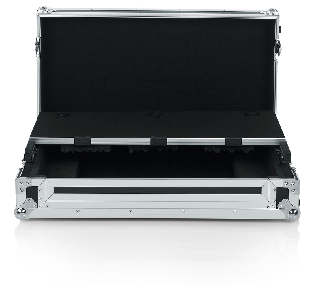 Gator’s G-TOURDSPDDJ1000 is designed to fit the Pioneer DDJ-1000 and DDJ-1000SRT Controllers. This tour-style plywood case includes the patented sliding laptop platform for setup of computer, control surfaces and DJ gear. A removable front panel provides access to headphone jacks while cable ports allow power and signal routing. The G-TOURDSPDDJ1000 interior is carpet lined with firm, EVA padding to protect your controller and ensure air-flow. To pack up, slide the platform back into place, secure the lid with commercial grade twist latches and roll it on its recessed wheels. The G-TOURDSPDDJ1000 provides storage, transport, protection and use of DJ controller without leaving the case.
