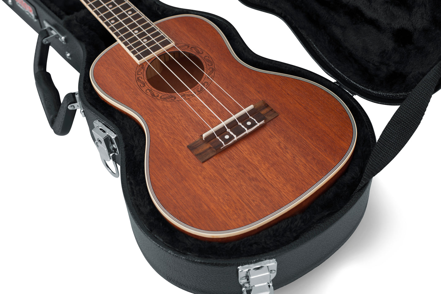 Gator’s GWE-UKE-CON ukulele case provides a durable, hard-shell, lightweight solution for daily use for your concert style ukulele. Built from heavy-duty plywood wrapped in Tolex PVC plastic providing a safe, moisture resistant home for your ukulele.