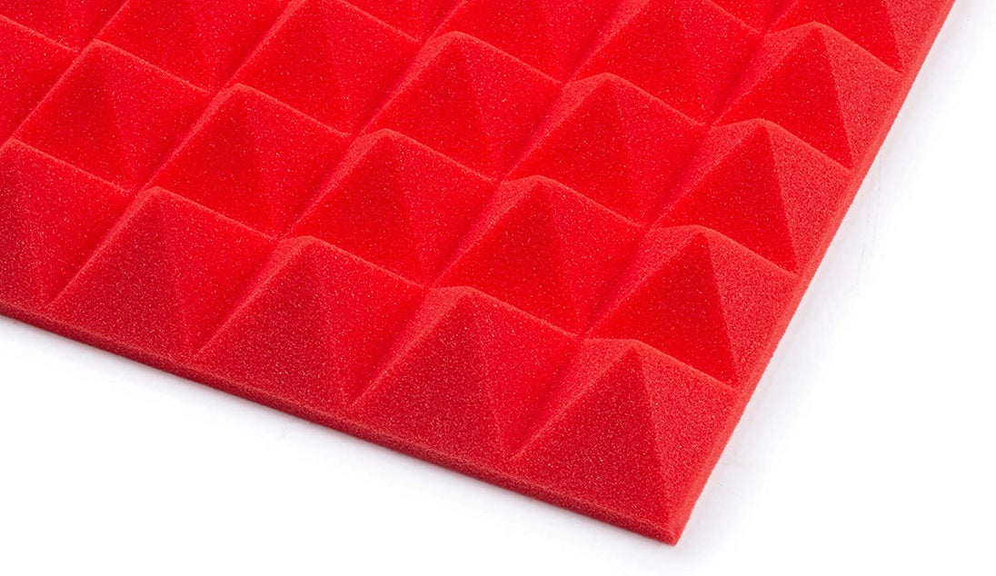 - Four (4) Pack of 2”-Thick Acoustic Foam Pyramid Panels 12”x12” – Red Color