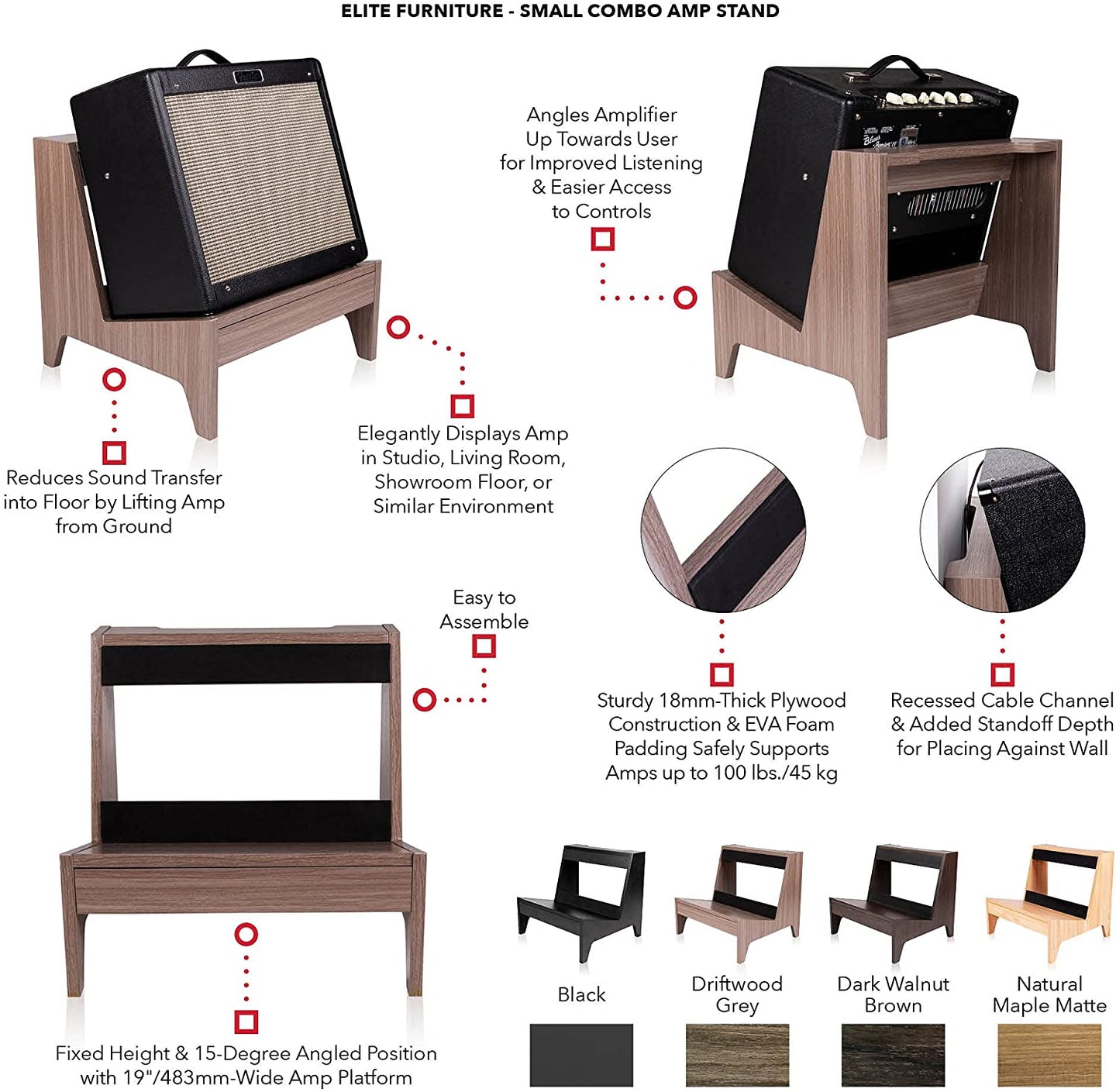 - Elegantly Displays Amp in Studio, Living Room, Showroom Floor, or Similar Environment
