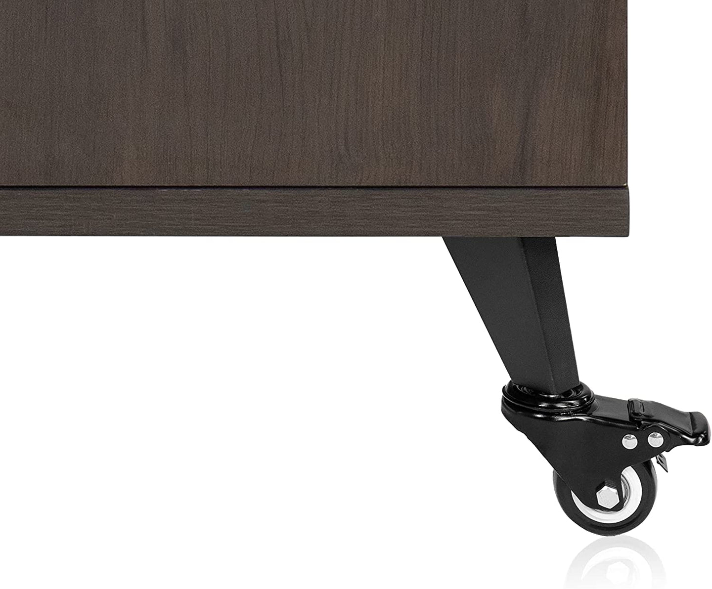 Elite Furniture Series Rolling Rack Sidecar Cabinet in Dark Walnut Brown Finish with Configurable Rack Space & Shelving