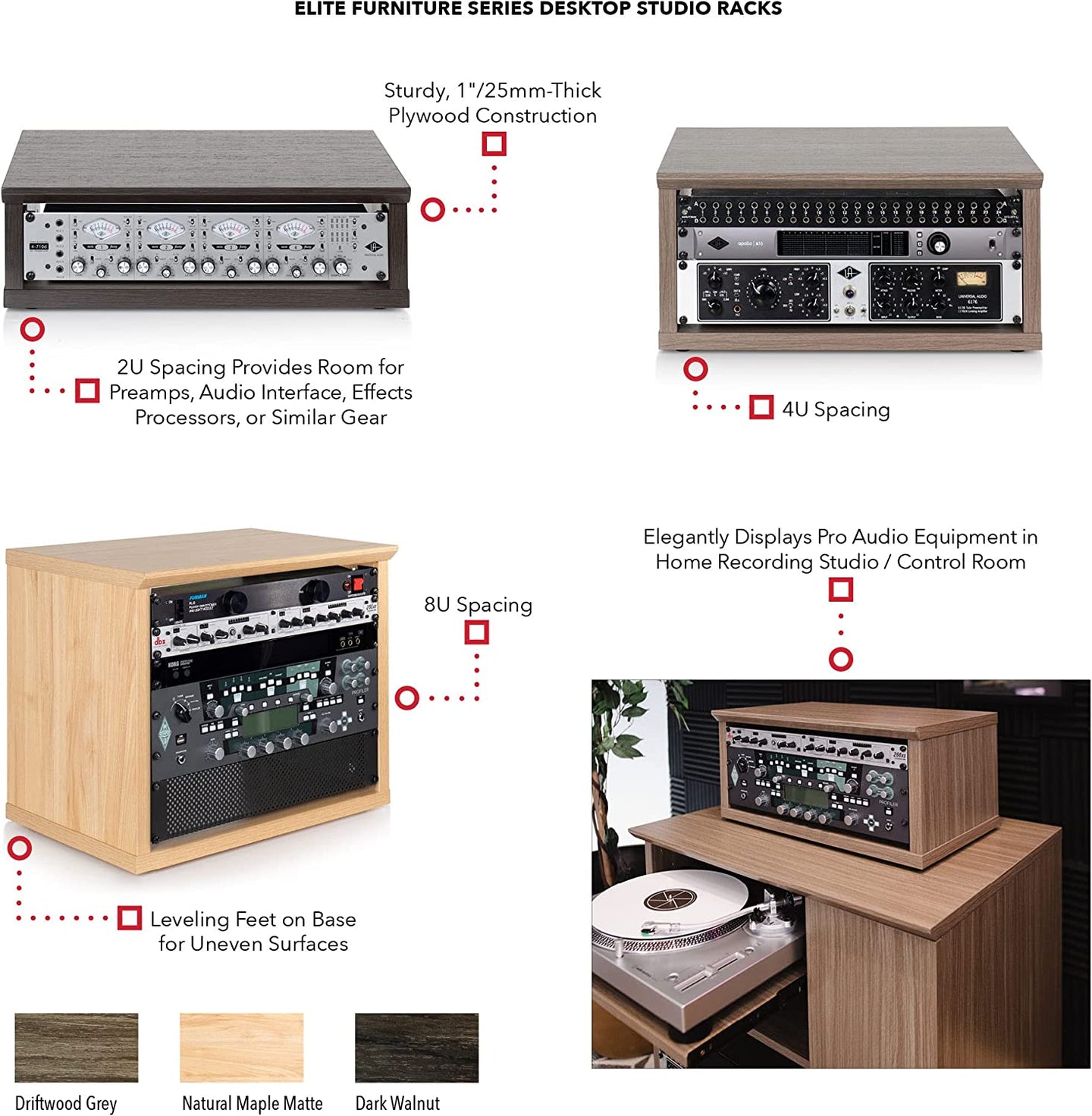 - 2U Spacing Provides Room for Preamps, Audio Interface, Effects Processors, or Similar Gear