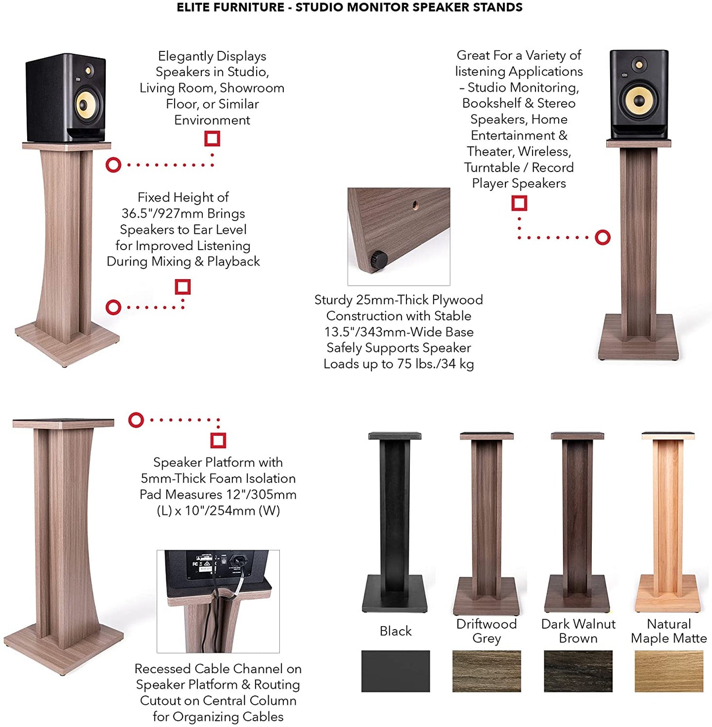 - Frameworks Elite Series Floor-Standing Studio Monitor Speaker Stand in Brown Finish