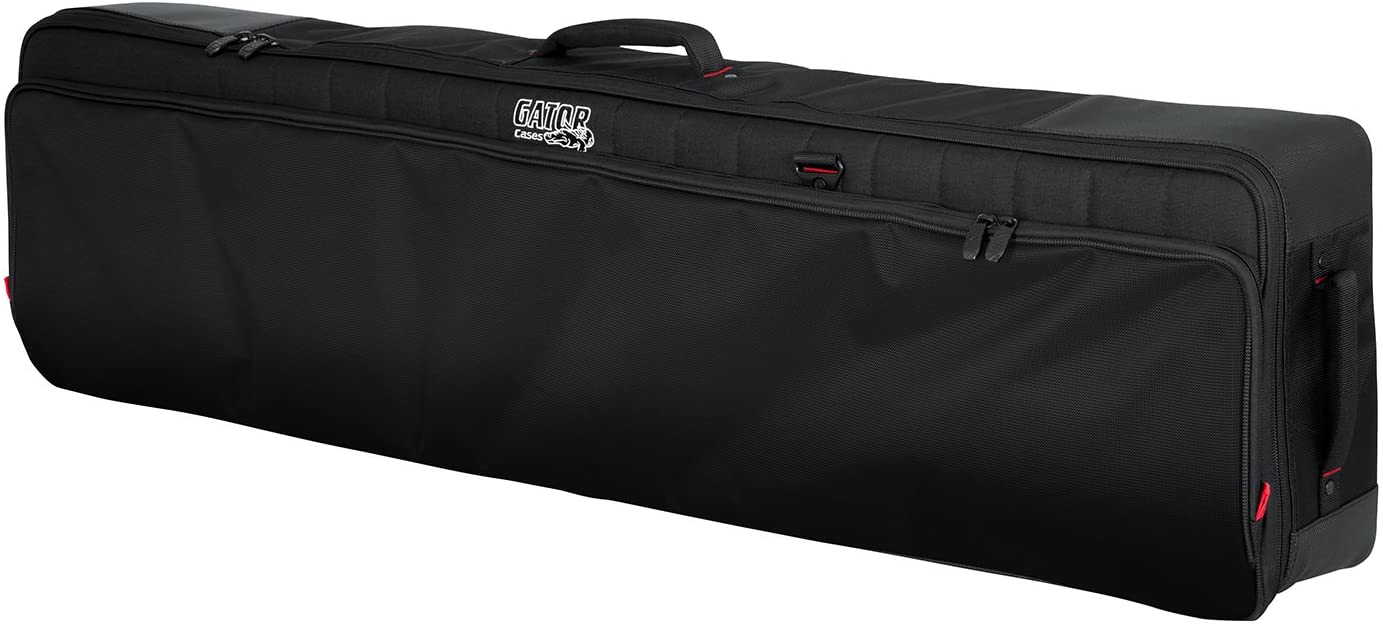 The Gator Cases Pro-Go 76-Note Slim Keyboard Gig Bag (G-PG-76SLIM) provides unrelenting security for your keyboard without compromising comfort and portability. A ballistic nylon exterior, ultra-thick padded sidewalls, and micro-fleece interior lining offer protection inside and out. Outer storage compartments help organize your cables, foot pedal, tablet, and favorite keyboard accessories. The G-PG-76SLIM is outfitted with reinforced handles, fully adjustable and fully removable backpack straps, as well as a wrap-around rain cover. Keep your 76-note slim keyboard safe with the Gator Pro-Go Keyboard Gig Bag.