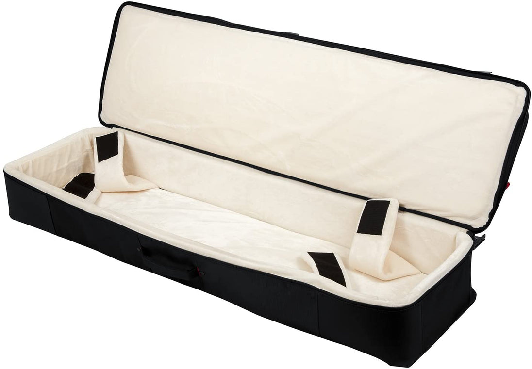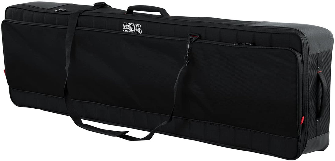 The Gator Cases Pro-Go 88-Note Slim Keyboard Gig Bag (G-PG-88SLIM) provides unrelenting security for your keyboard without compromising comfort and portability. A ballistic nylon exterior, ultra-thick padded sidewalls, and micro-fleece interior lining offer protection inside and out. Outer storage compartments help organize your cables, foot pedal, tablet, and favorite keyboard accessories. The G-PG-88SLIM is outfitted with reinforced handles, fully adjustable and fully removable backpack straps, as well as a wrap-around rain cover. Keep your 88-note slim keyboard safe with the Gator Pro-Go Keyboard Gig Bag.