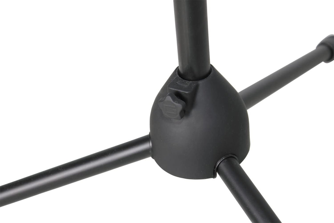 Frameworks Tripod Mic Stand with Deluxe One-Handed ClutchRemovable and adjustable cable management clips keep your setup clean, organized and safe.The soft-touch, one-handed clutch allows you to easily adjust the height with a simple squeeze of the trigger. Setup and quickly make precise height adjustments, even if you are a one-man-show.Sturdy tripod feet branch out from the base for a solid stance. When you are not using your stands, conveniently fold and collapse the feet into a compact unit ready for transport or storage.The red safety rings on the feet add a touch of visibility in a dark room or venue to reduce the risk of tripping. Simply remove the rings for a sleek and more subtle presentation.DETAILS:- Deluxe Microphone Stand- Collapsible Tripod Base- Soft Grip One Handed Height Adjustment Clutch- Min / Max Height: 37/67 Inches (940/1702 mm)- Cable Management Included- Heavy Duty Steel Construction- Red Safety Trim On Feet (Removable)- Fits Both US and Euro Mic Clips