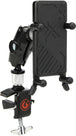 The Dual Adjust Bass Drum hoop mounted Smartphone holder offers the ultimate in adjustability and touch screen access. Its rubber padded clamp won't damage the bass drum hoop and delivers a secure mount that won't move during playing sessions. The scissor action phone clamp accommodates most smartphones. Drummer tested and proven durability.