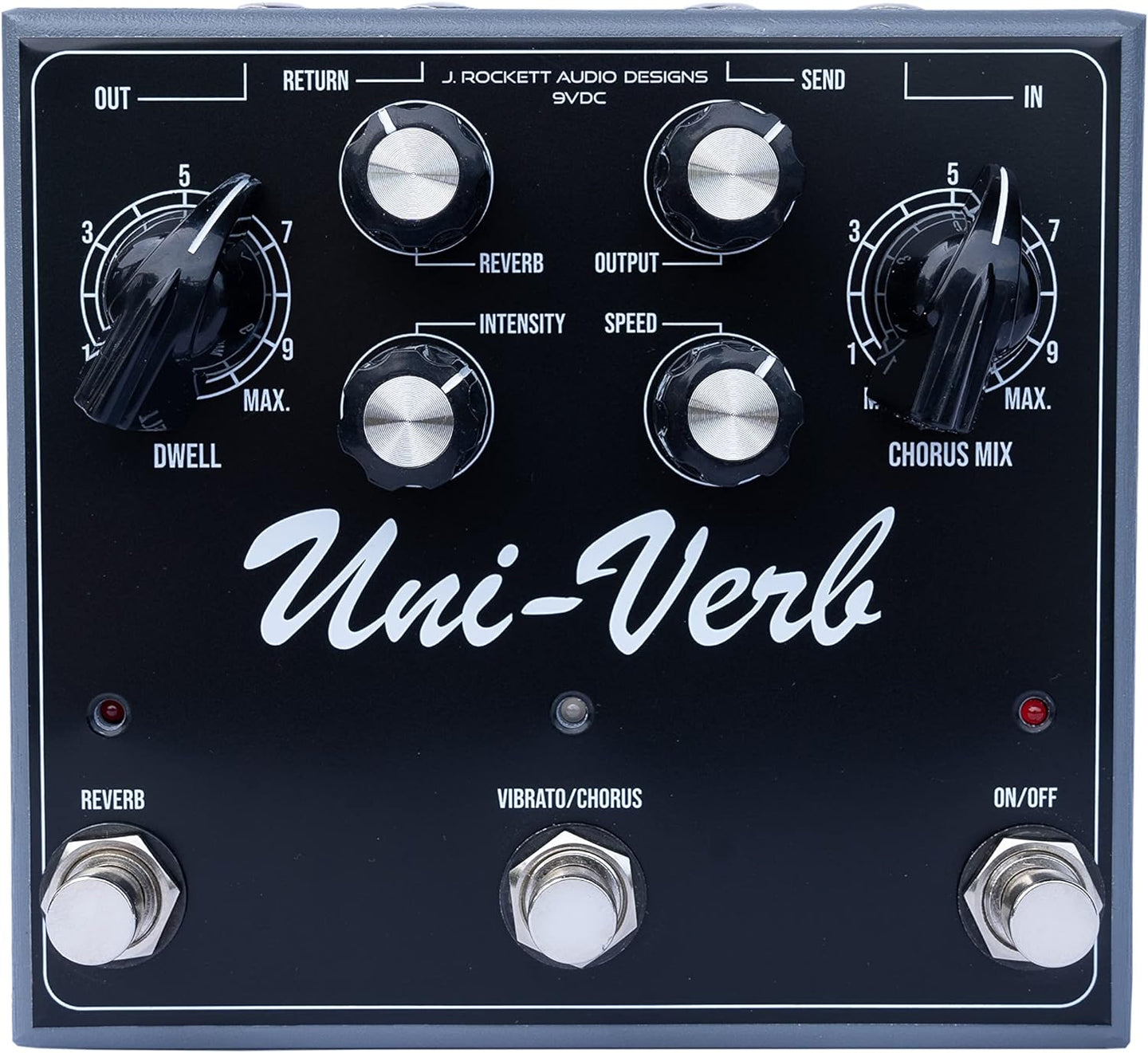 The Uni-Verb is a painstakingly accurate photocell analog vibe based on of the original Univibe pedal with an added spring reverb.