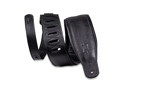 - 3.25” - Wide Garment Leather Guitar Strap in Black with Black Backing