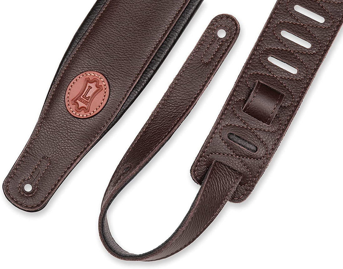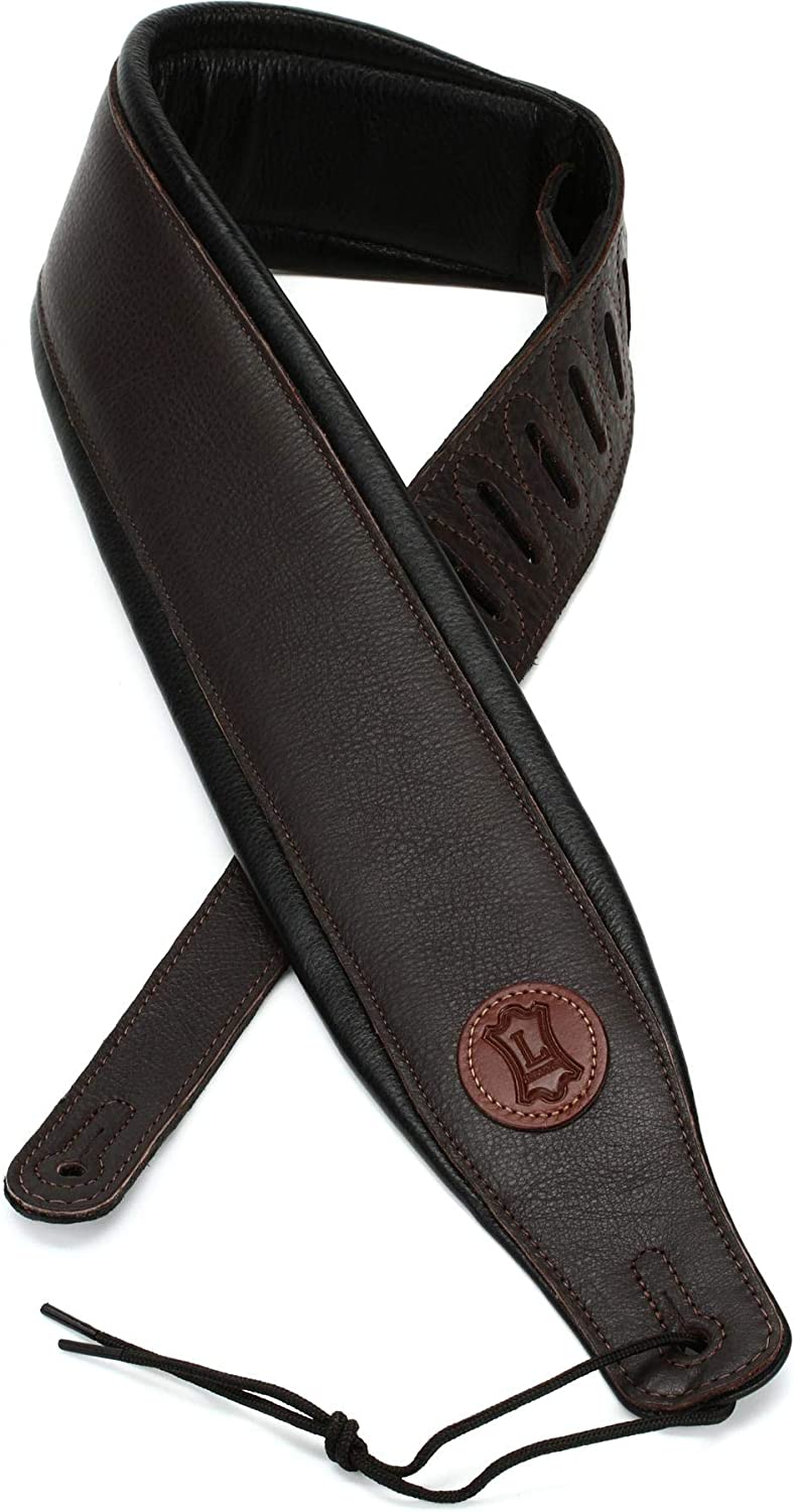 3″ Signature Series garment leather guitar strap with foam padding and garment leather backing. Adjustable from 37″ to 51″. Also available in extra long (XL), which adds 12″ to overall length.