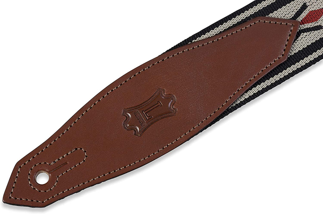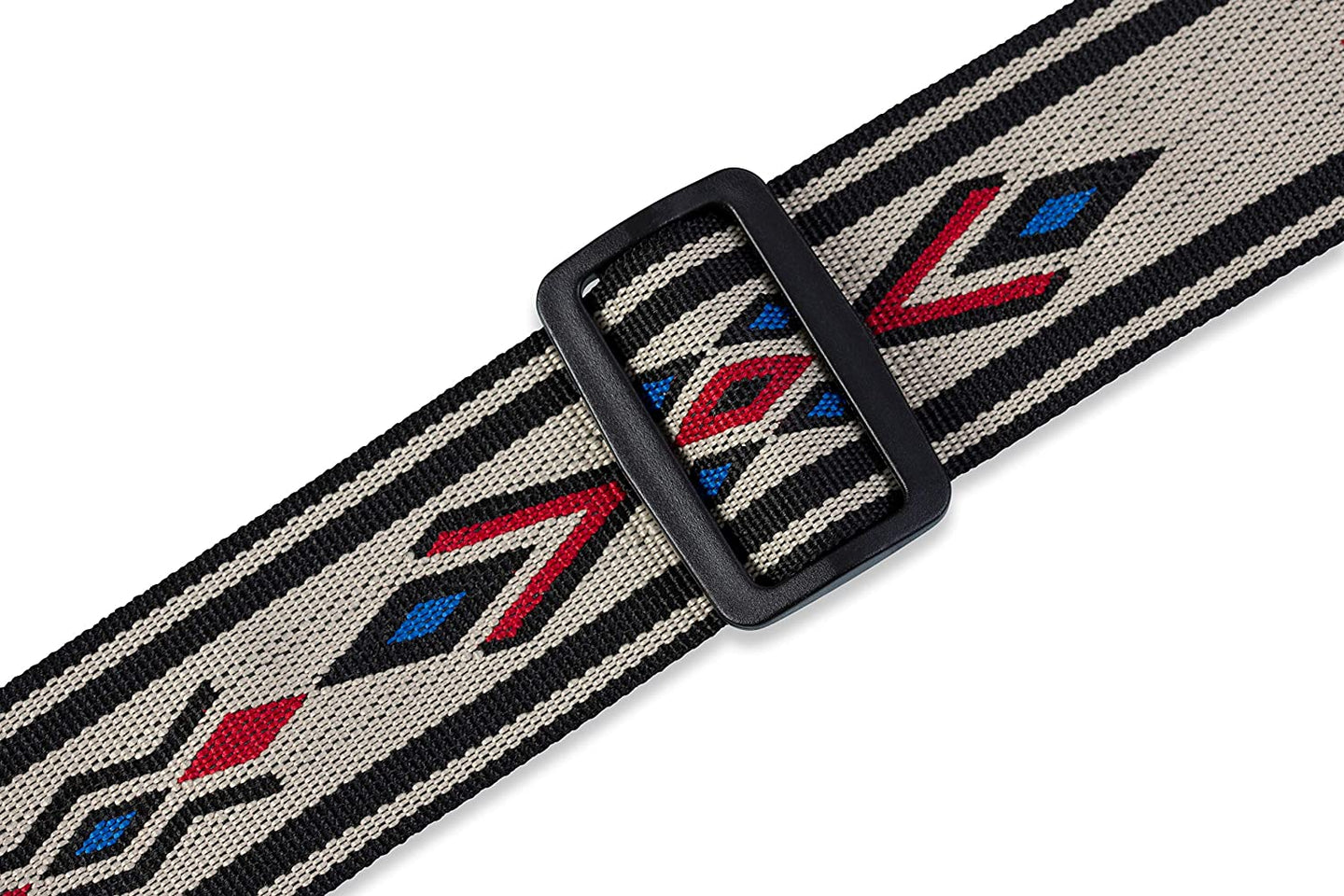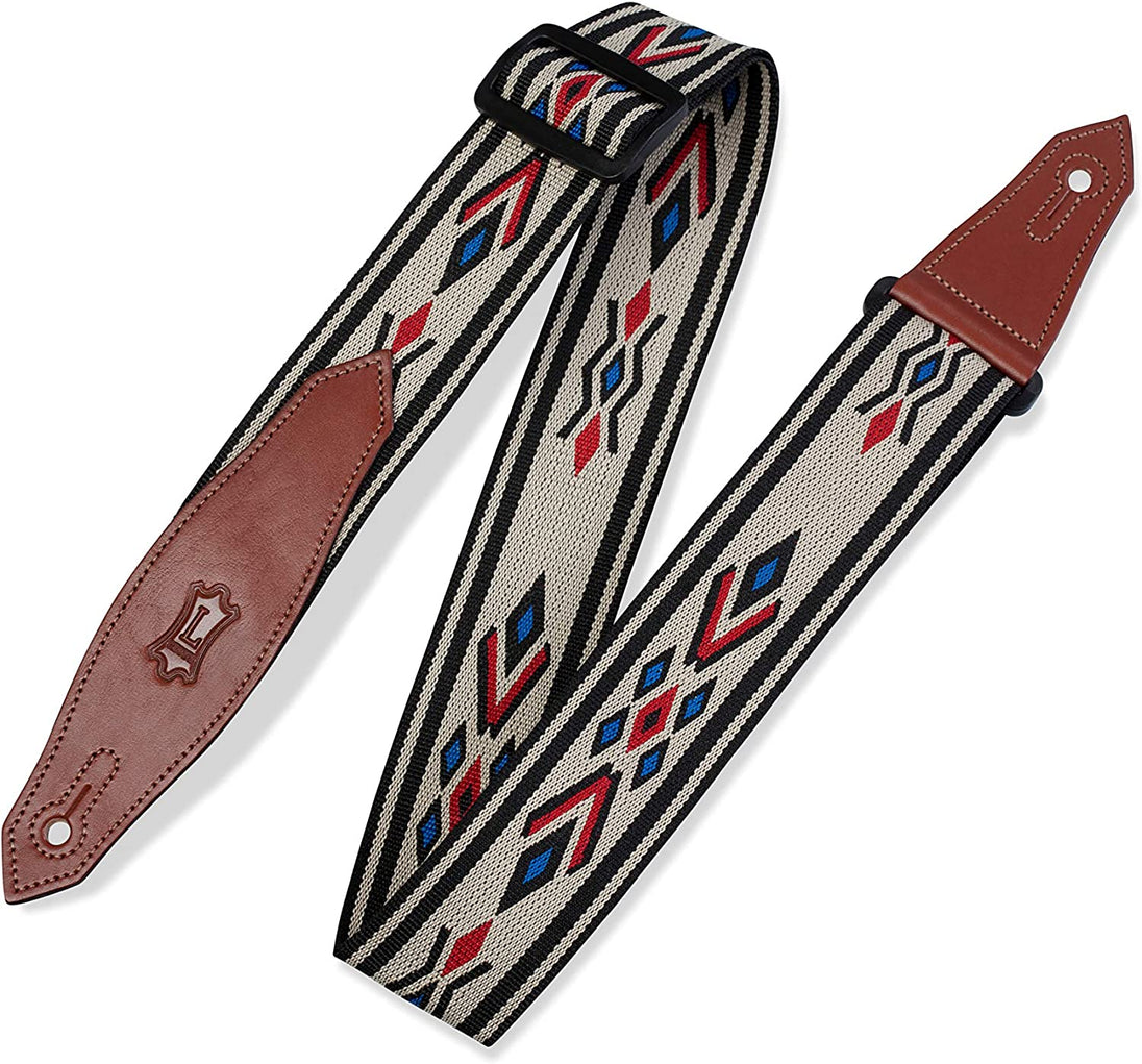 - 2” woven polypropylene guitar strap with Tan, Blue & Red motif | Adjustable up to 62” in length
