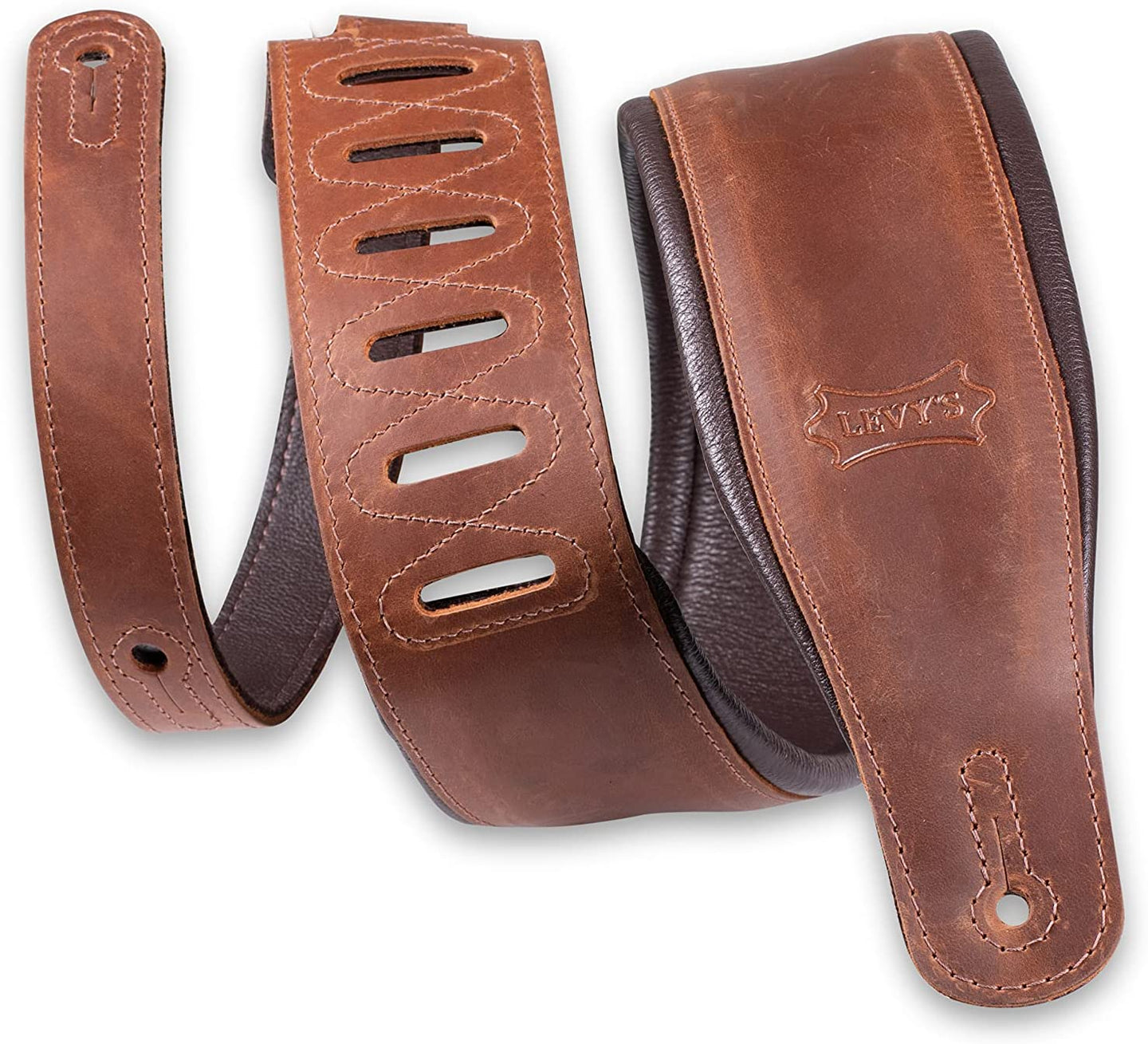 The highly durable leather ends with embossed Levy's logo, provide long-lasting security for your guitar.