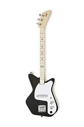 A small 3-string electric guitar with a built-in amp and speaker, bundled with flashcards, free lessons and an app that teaches you music through AR!FEATURES:- Built-in amp and speaker!- Real wood, real guitar: paulownia body, maple neck, perfect intonation and low string action for enhanced playability- Virtually no extra weight, no awkward knobs or controls and the classic Loog guitar silhouette stays unchanged- Includes flashcards with chord diagrams and full access to the Loog Guitar app (iOS and Android)