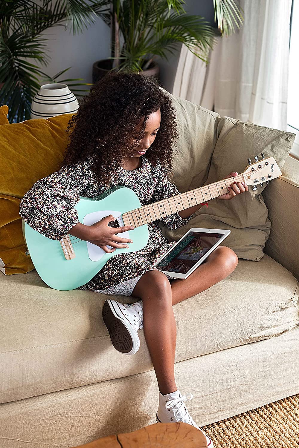 With its slim neck and accompanying app, the Loog Pro VI Acoustic guitar is the perfect guitar for beginners ages 12+. The Loog Pro VI, our first 6-string guitar, comes with flashcards and an app that will get you playing songs – not just scales or exercises – right from day one.