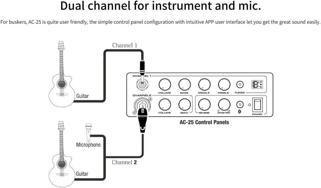 For buskers, AC-25 is quite user friendly, the simple control panel configuration with intuitive APP user interface let you get the great sound easily.