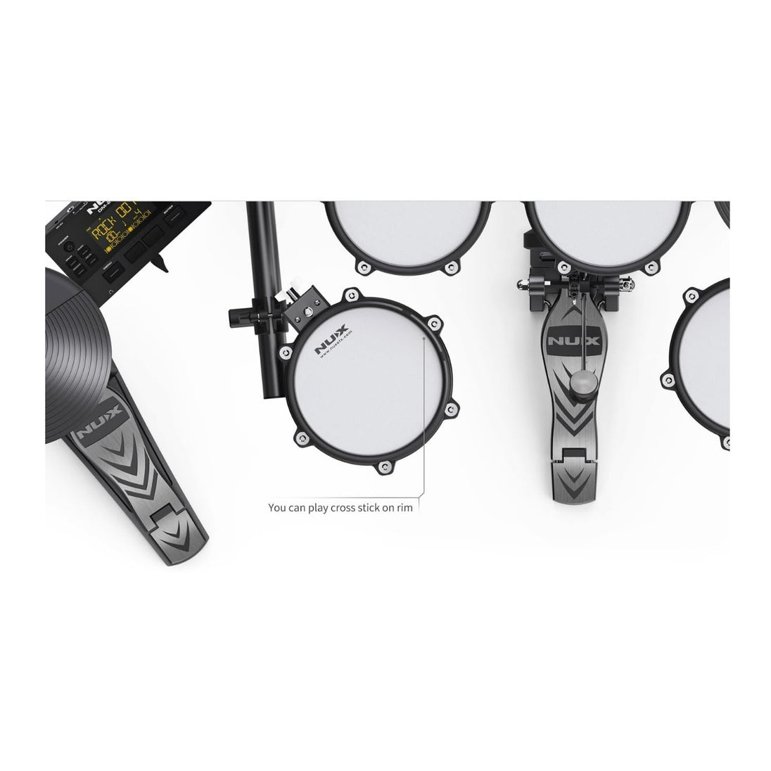All Mesh Head Entry-Level Recordable Digital Drum Kit with Mesh Drum Pads, Independent Kick Drum, Diverse Sound Library, and Coach Function. DM-210 is a new entry-level drum set, but it is equipped with all mesh drum pads. You can easily customize the perfect feeling for your style by adjusting the tightness of the mesh heads. The independent kick-drum is specially designed for DM-210, and gives you a realistic drumming experience. This drum set doesn’t need much space - just 1.5 square meters! That’s it ! Place it anywhere you want. You can practice in your room and then move it to the living room for the big performance. You can easily move it outdoors for backyard parties. It’s unbelievably lightweight so just about anyone can move it with ease. Monday with metal, Tuesday with rock, Wednesday play some funk, Thursday practice the pop. Blues for Friday, and jazz for your weekend. No matter what you play, what music style you love, DM-210 can fulfill your music needs. The NUX Team designed the new sound library specifically for DM-210 users.
