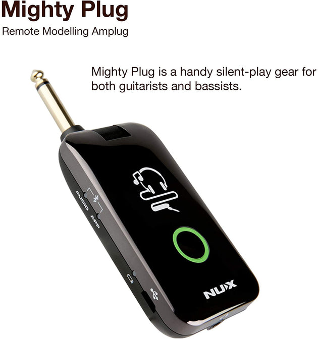NUX Mighty Plug MP-2 Guitar and Bass Modeling Headphone Amplug with Bluetooth,13 Amplifier Models,20 IR,19 Variety of Effects